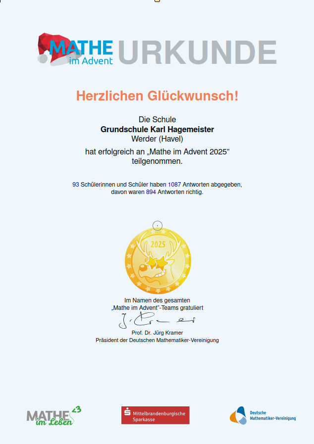 Wir freuen uns sehr über die erfolgreiche Teilnahme und danken allen Schülern sowie den beteiligten Lehrkräften für ihr Engagement.